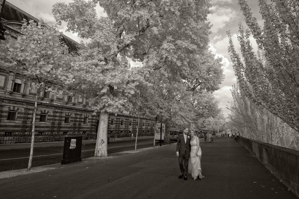 For photographs of the couples we moved along the Seine, just before sunset, to the Eiffel tower that is peeling impressive backdrop. I tried to get out from classic backgrounds of Paris although some 'classic' photos I could not do them. Wedding photographer Edoardo Agresti