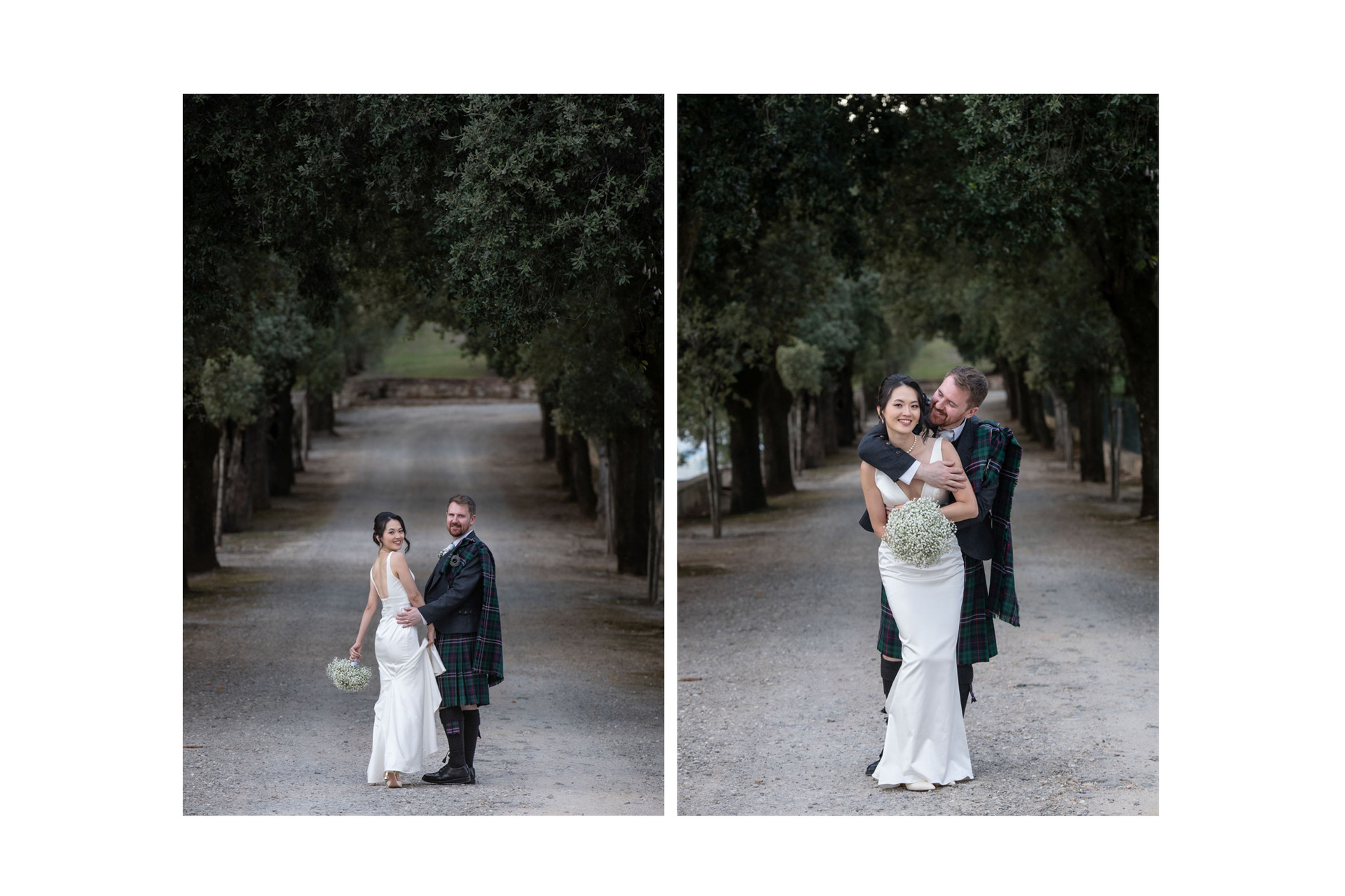 As a wedding photographer in Florence, I had the incredible privilege of capturing Sera and Jared’s unique celebration—a wedding that beautifully blended Korean elegance and Scottish tradition. Their special day took place at the stunning Villa Corsini in Mezzomonte, a dream venue nestled in the Tuscan hills just outside Florence, offering breathtaking views and a magical setting for an outdoor ceremony.